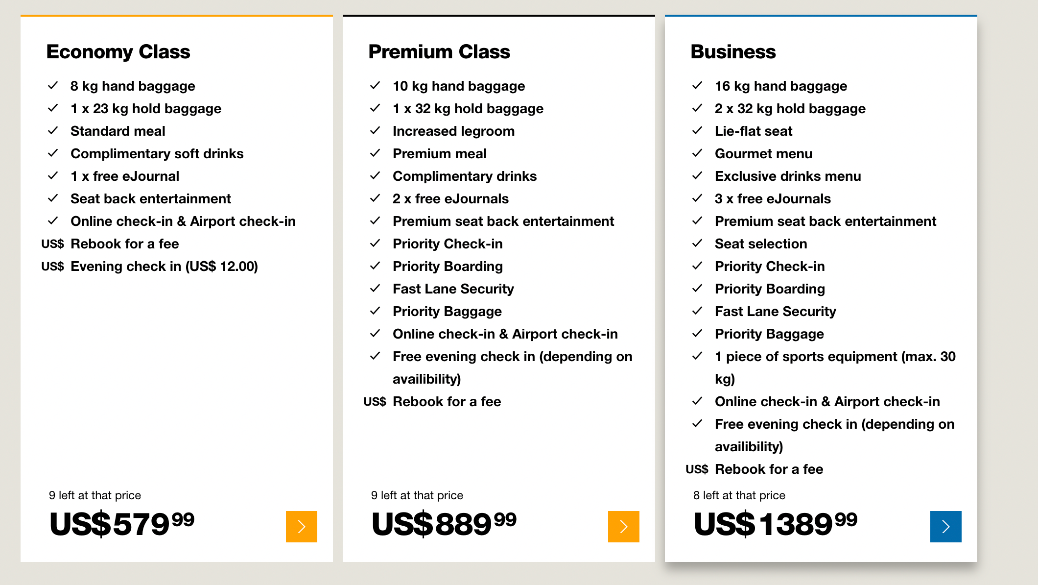 Condor's business class comes with a variety of benefits such as priority check-in and lie-flat seats. The business-class fare also includes checked luggage so you don't have to worry about paying extra fees.