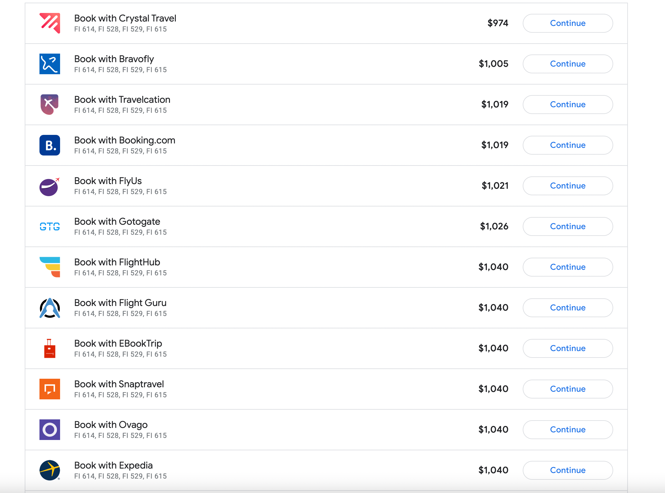 We recommend using Google Flights to determine availability and then booking your flights on the airline's website since airlines are more dependable if a flight is canceled, delayed or has a booking change.