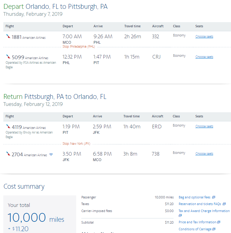 Orlando (MCO) to Pittsburgh (PIT) for 10,000 miles + $11 round-trip: