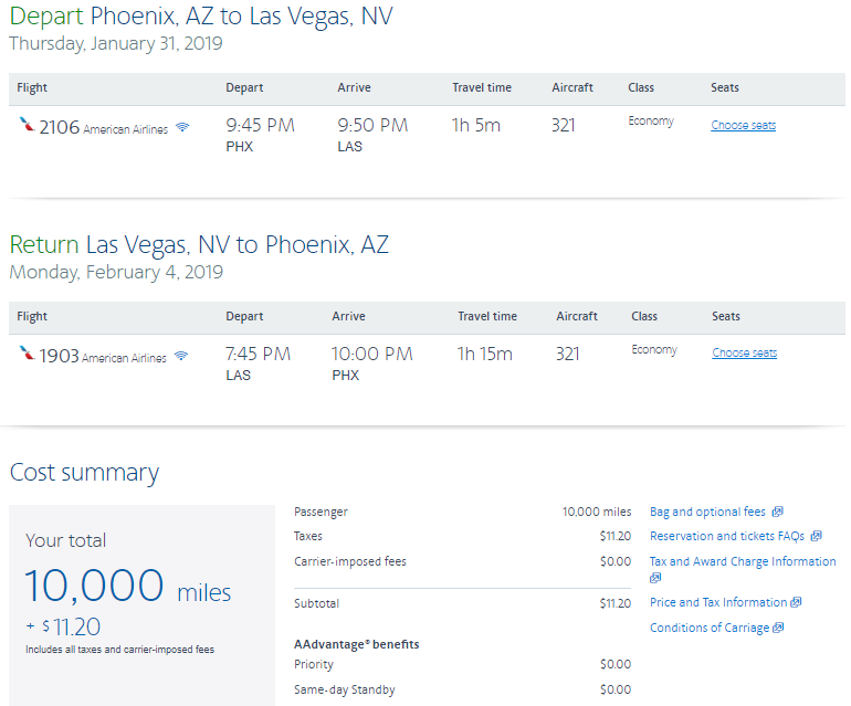 Phoenix (PHX) to Las Vegas (LAS) for 10,000 miles + $11 round-trip nonstop:
