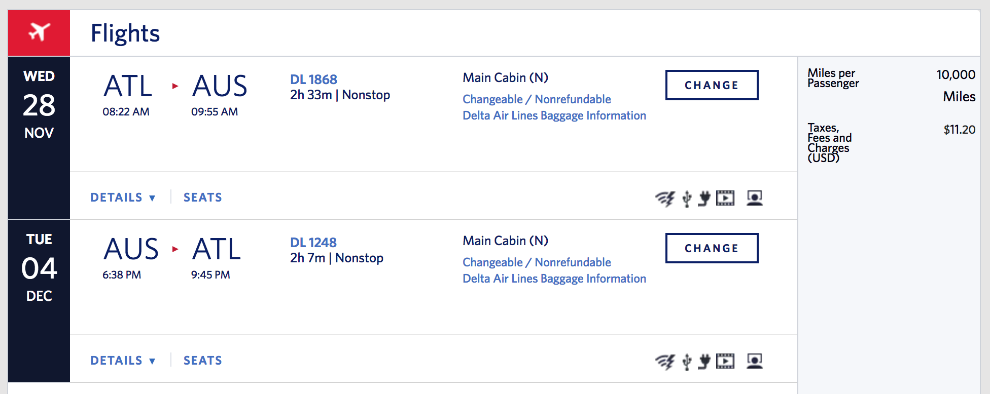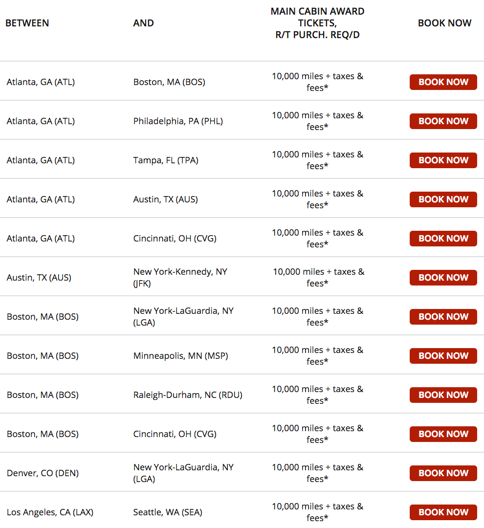 Routes: Between ATL/AUS/BOS/DEN/DTW/LAX/BNA/LGA/MSP/SAN/SEA; may be additional availability on Delta.com