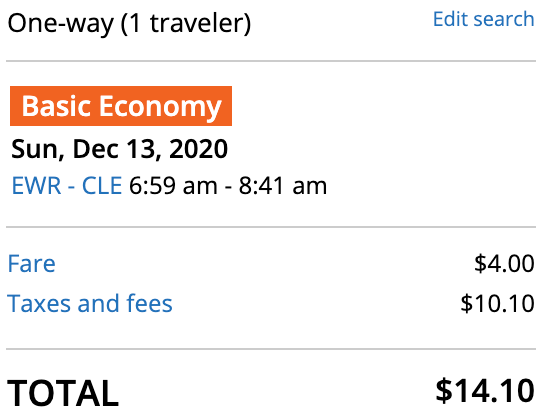Newark (EWR) to Cleveland (CLE) for $14 one-way nonstop in basic economy on United: