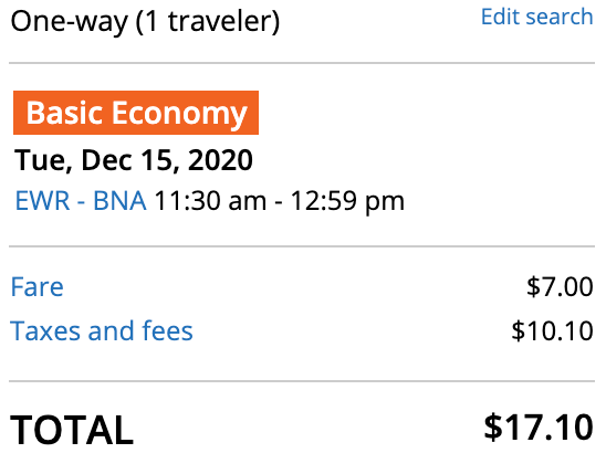 Newark (EWR) to Nashville (BNA) for $17 one-way nonstop in basic economy on United:
