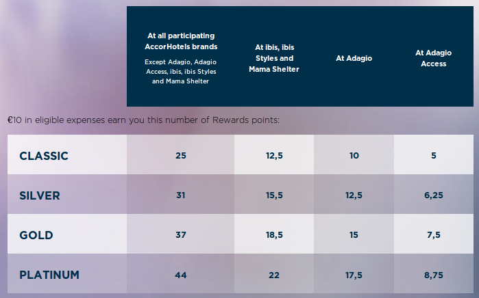 At AccorHotels, you earn Rewards points based on your status in the Le Club AccorHotels program as well as the brand of the property.
