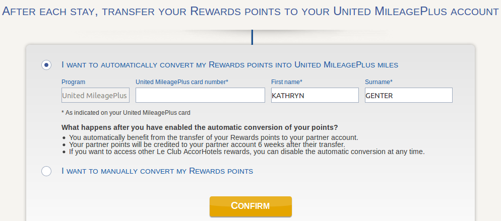 To earn MileagePlus miles when staying at AccorHotels, simply add your United MileagePlus account number to your Le Club AccorHotels profile and select "Automatic Conversion" on the site. Then, any Le Club AccorHotels Rewards points that you earn will automatically convert to MileagePlus miles at a rate of two Rewards points to one MileagePlus mile. TPG's latest valuations peg the value of MileagePlus miles at 1.4 cents apiece. So, for each Le Club Rewards point you transfer, you're giving up 4.5 cents of value in Rewards points to get 1.4 cents of value in MileagePlus miles. This isn't a good value unless you don't have any use for AccorHotels discounts.