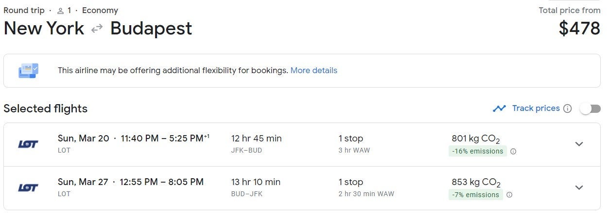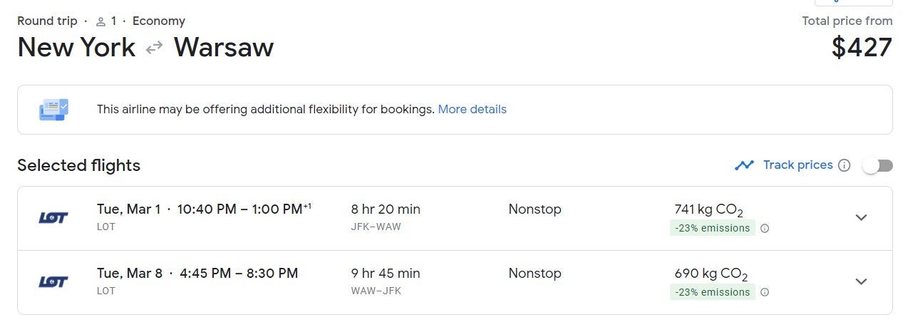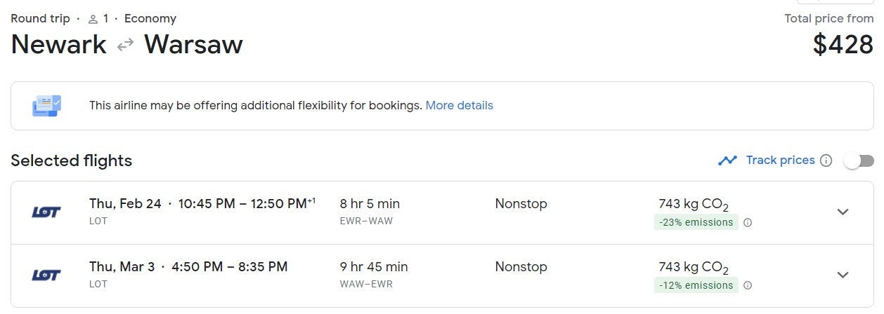 For the same price, those on the East Coast could book a trip from New York (JFK) at $427 round-trip and Newark (EWR) to Warsaw (WAW) at $428 round-trip.