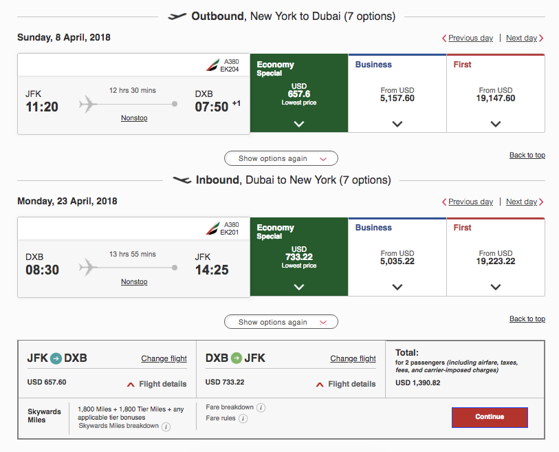 This sale includes a number of Midwest and West Coast cities, and some fares may even be slightly cheaper than advertised, so your best bet is to use Google Flights to search for the best dates, and then book directly through Emirates. Note that you must book between now and February 17 to take advantage of the discounted fares.