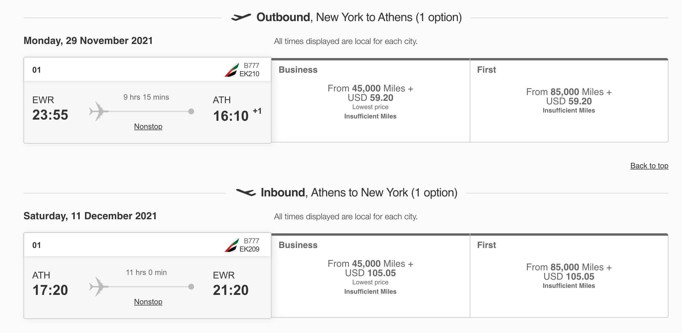 Newark (EWR) to Athens (ATH) for 90,000 Skywards miles and $165 in taxes and fees