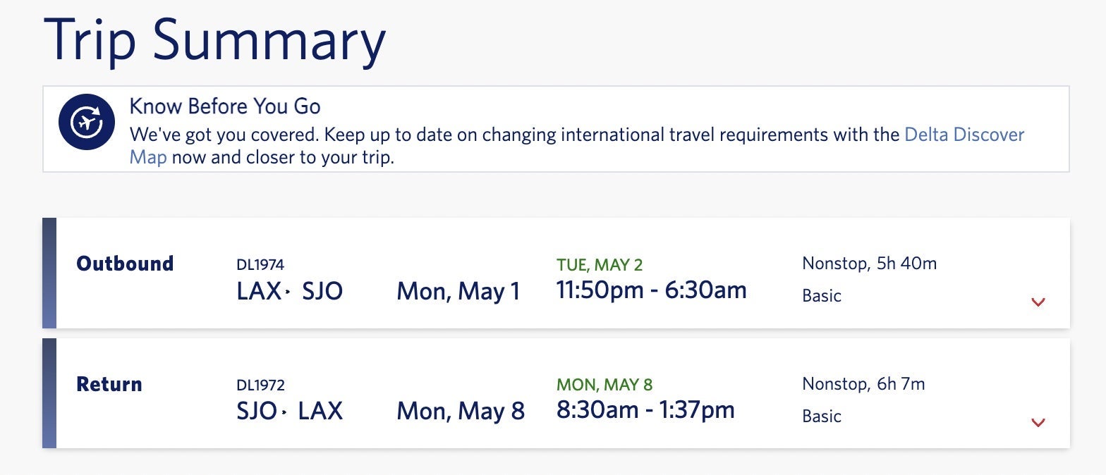 For example, you could book the below Delta flight from LAX to SJO in basic economy for just over $350 round trip in early May.