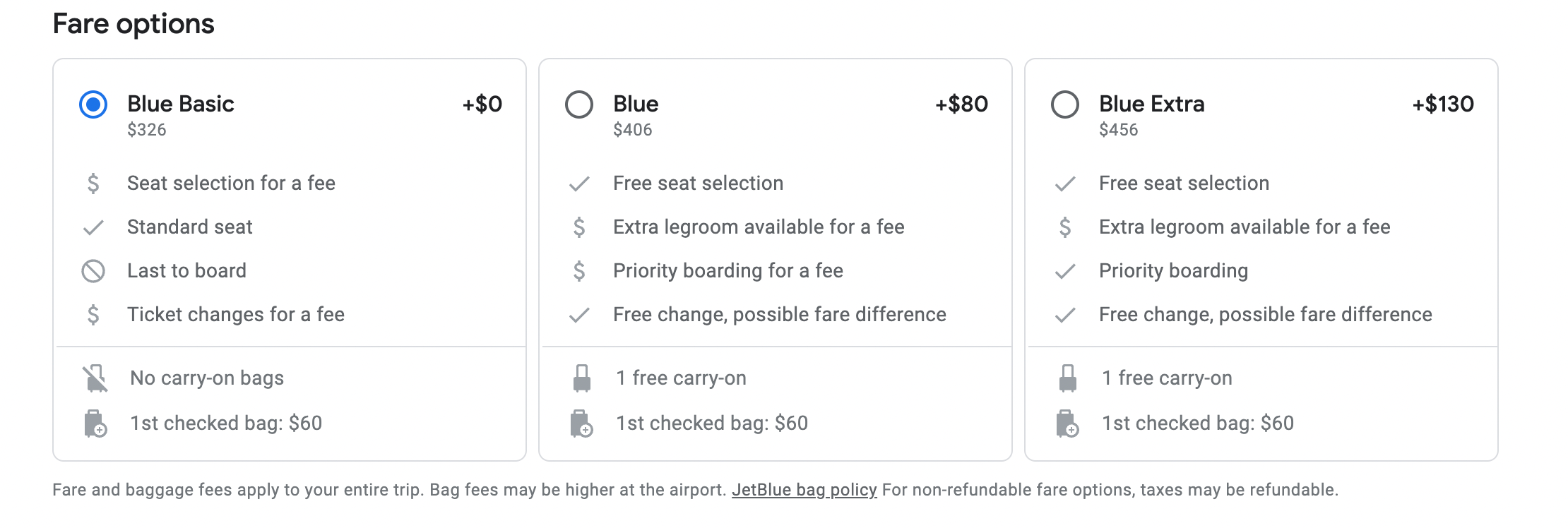 The prices of this flight to SJO are low, but it doesn't include many perks. For example, this flight is for JetBlue's Blue Basic fare type, which does not allow you to bring a full-sized carry-on bag or select a seat. If you want those perks included in your fare, consider upgrading to Blue for $406 round trip.