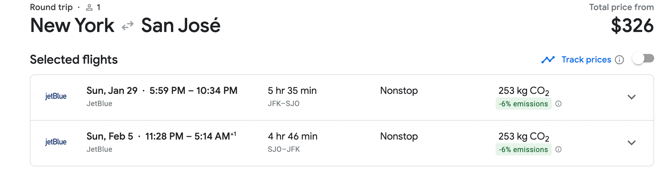 For example, you could book a nonstop flight from JFK to SJO the first week of February on JetBlue for $326 round trip.