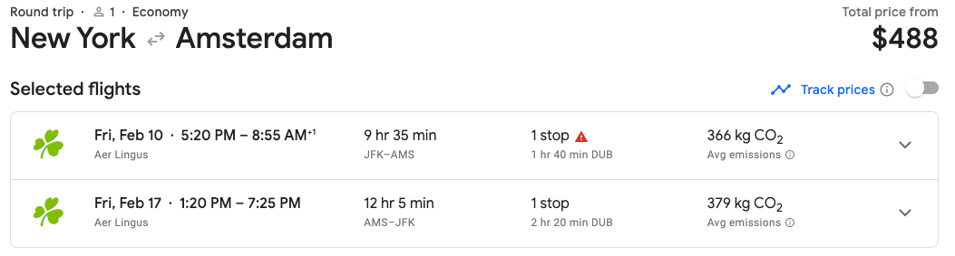 To book this deal, start by searching your home airport and destination via Google Flights, as I have done with a search from New York to Amsterdam.