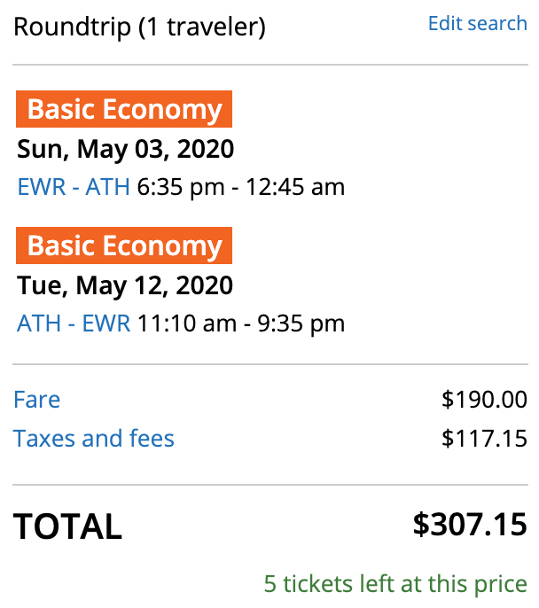 Newark (EWR) to Athens (ATH) for $307 round-trip on United/Swiss: