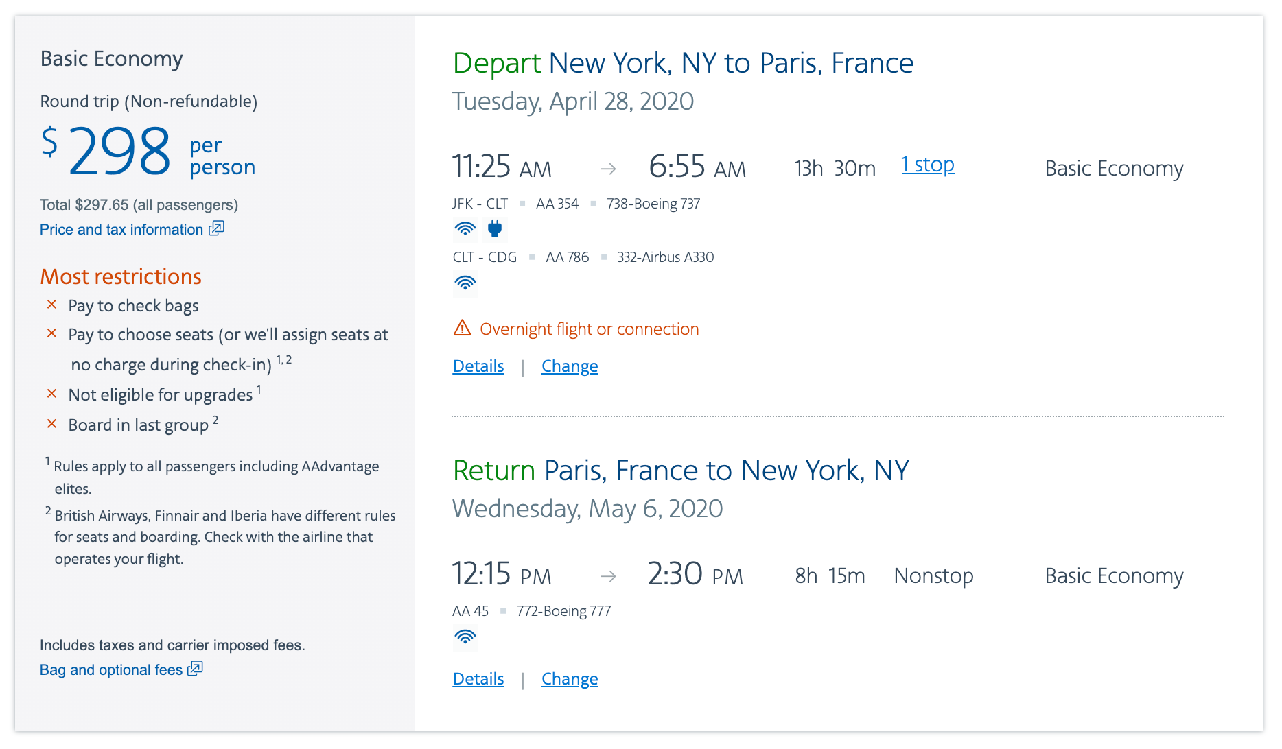 Some of these fares may book into basic economy, which means different things to different airlines, but often means you may not have free use of the overhead bins for a carry-on bag. You probably also won't be able to select your seat, get an upgrade or earn PQM/PQS/PQDs. However, it’s possible to defeat many of basic economy’s negative aspects by having elite status or a cobranded credit card.