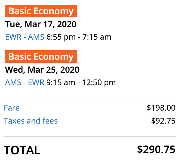 New York/Newark (EWR) to Amsterdam (AMS) for $291 round-trip on United: