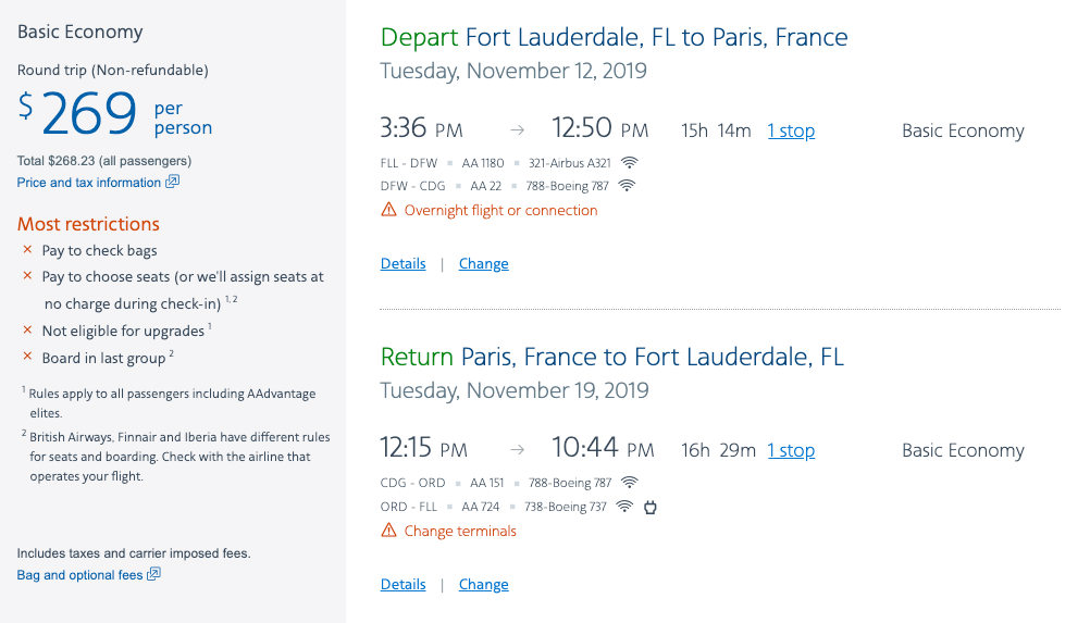 Fort Lauderdale (FLL) to Paris (CDG) for $269 round-trip on American: