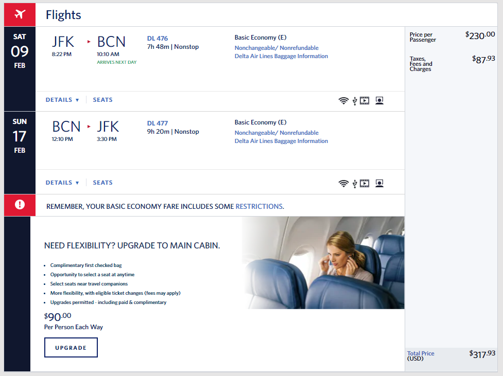 New York Kennedy (JFK) to Barcelona (BCN) for $318 round-trip nonstop on Delta: