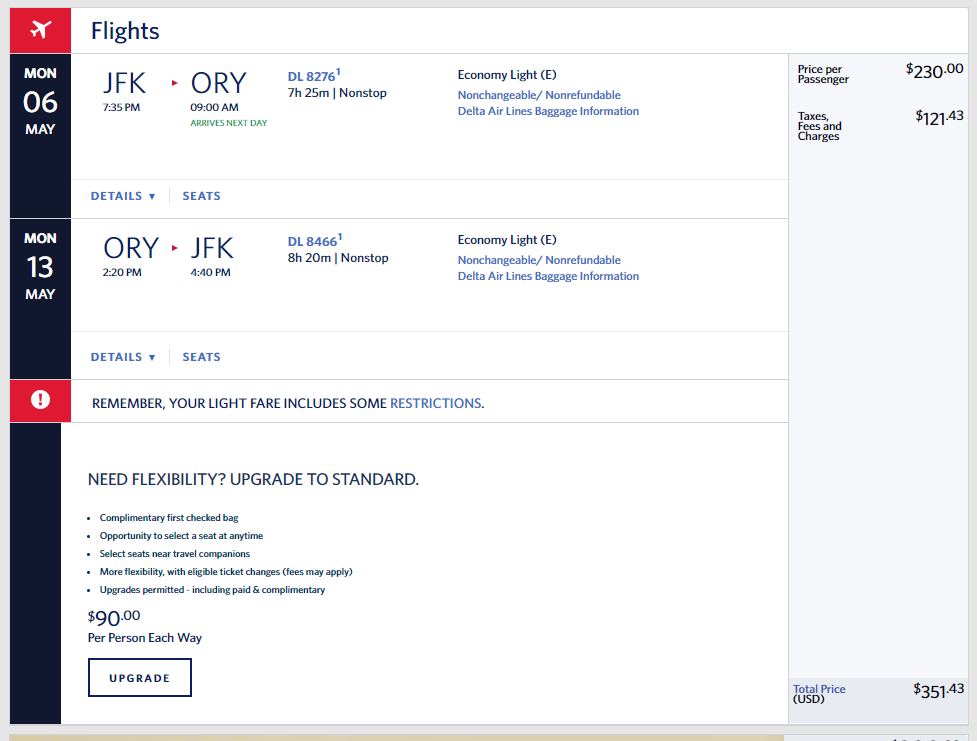 New York Kennedy (JFK) to Paris Orly (ORY) for $351 round-trip nonstop on Air France via Delta:
