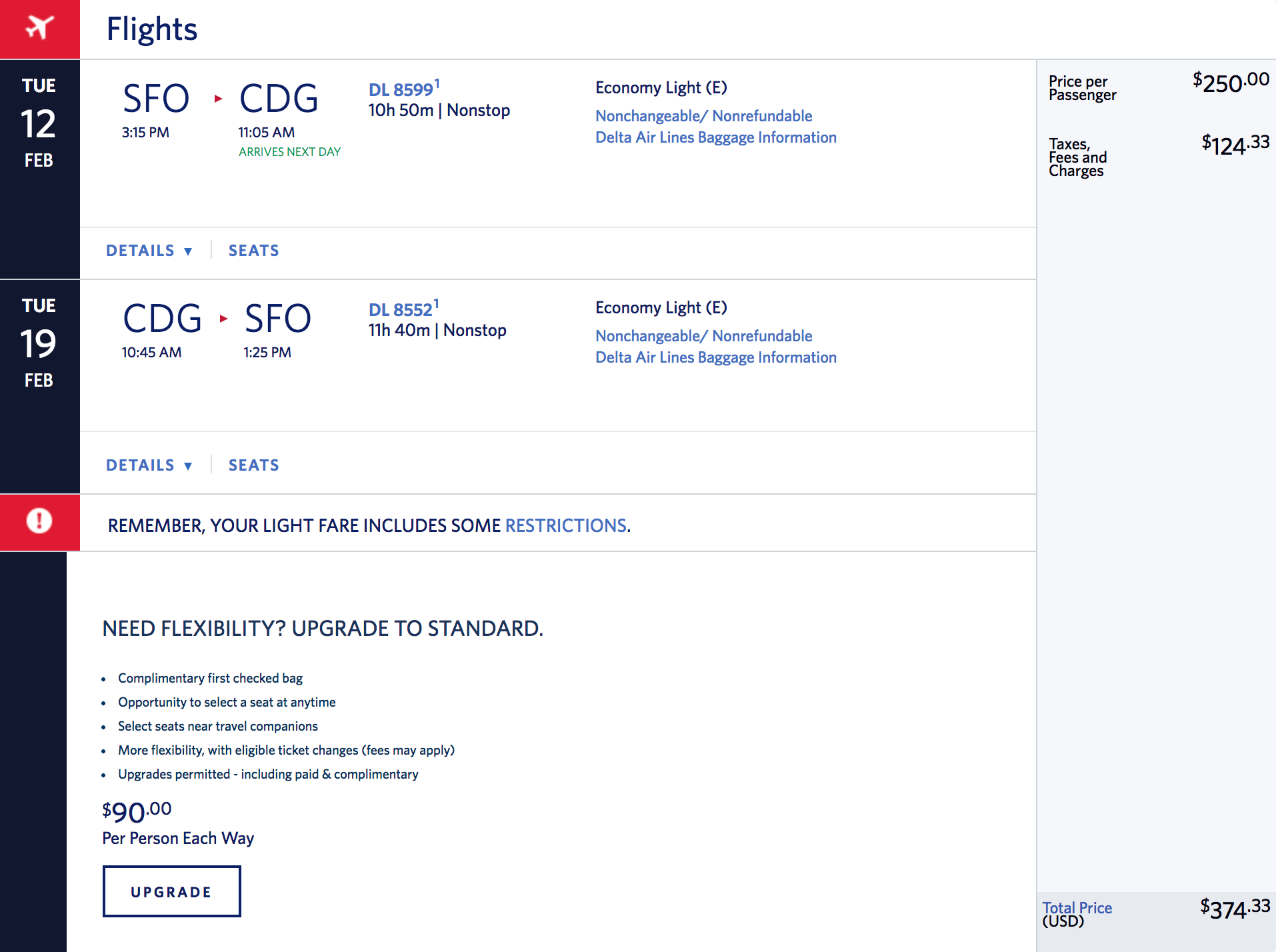 San Francisco (SFO) to Paris (CDG) for $374 round-trip nonstop on Air France via Delta: