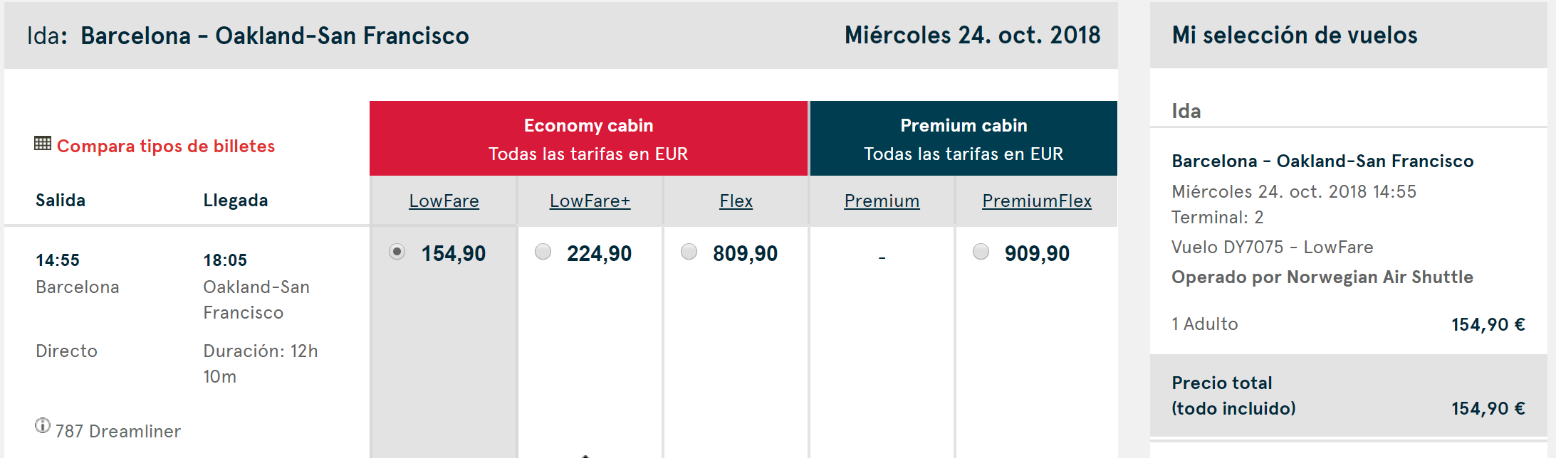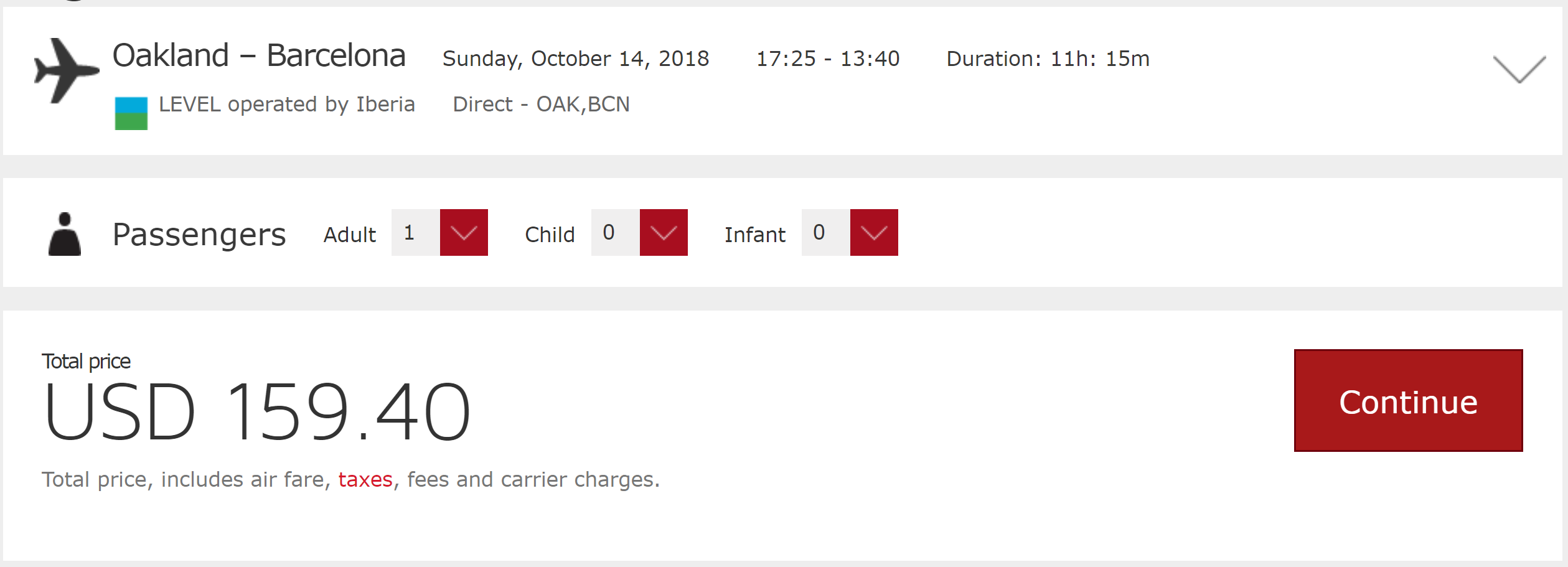 Oakland (OAK) to Barcelona (BCN) in October for $340 round-trip on LEVEL and Norwegian ($159 outbound + $181 return):