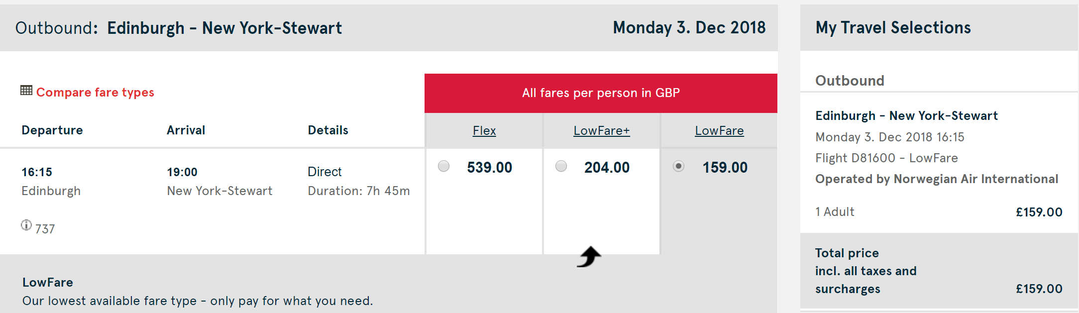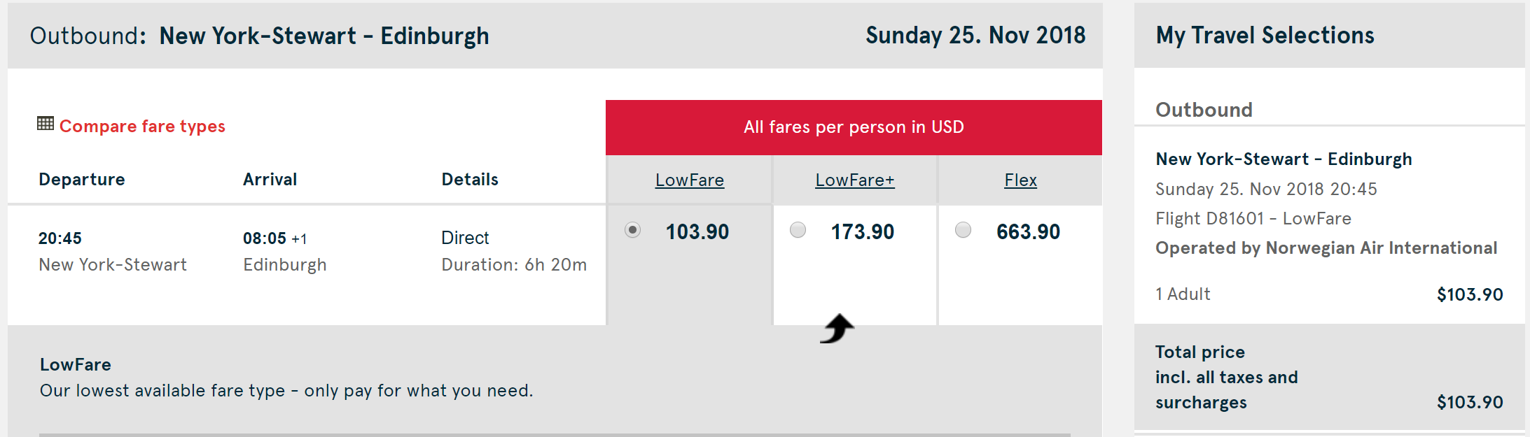 New York Stewart (SWF) to Edinburgh (EDI) in November/December for $313 round-trip on Norwegian ($104 outbound + $209 return):