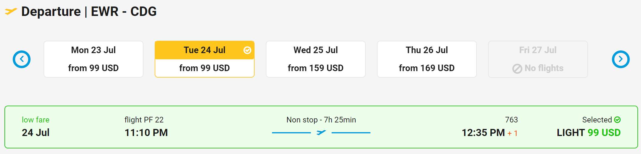 Newark (EWR) to Paris (CDG) in July for $99 one-way on Primera Air: