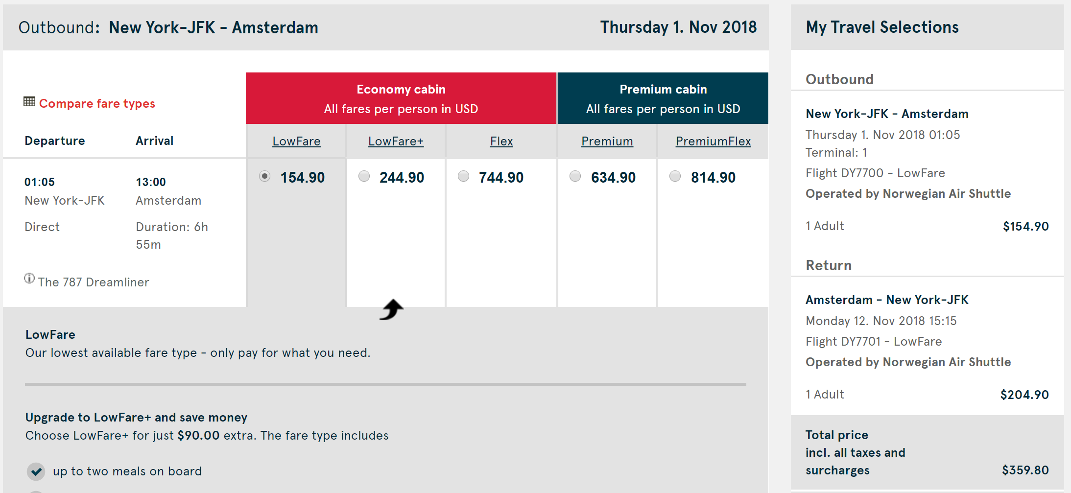 New York Kennedy (JFK) to Amsterdam (AMS) in November for $360 round-trip on Norwegian