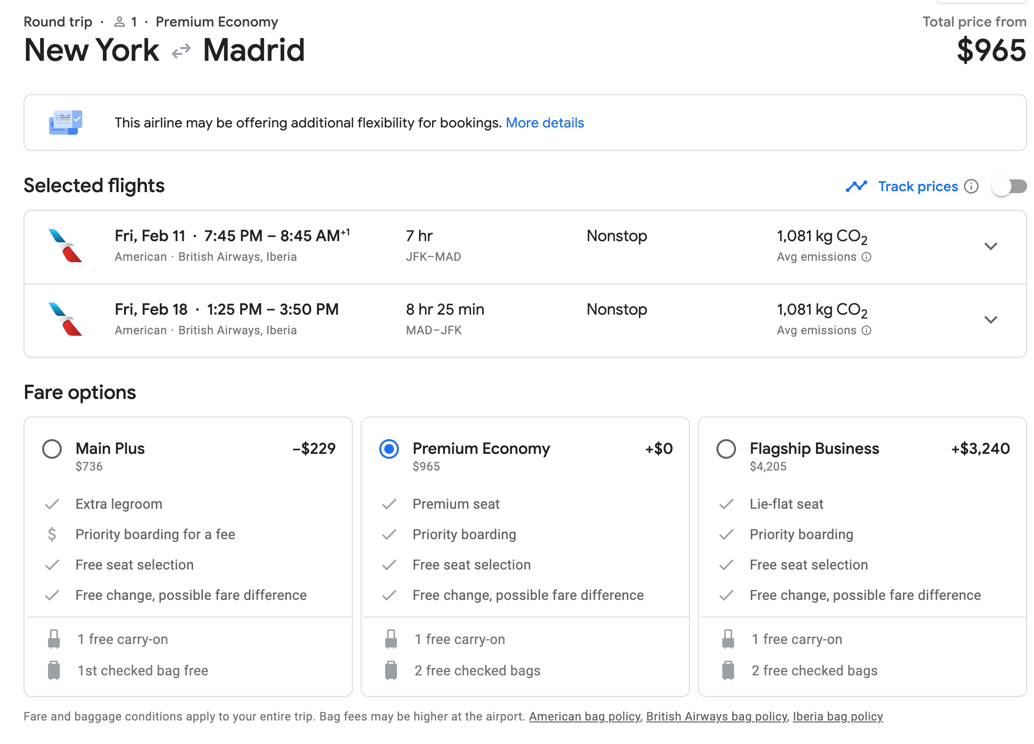 Because this deal is so expansive, I would recommend starting your search by looking at flight availability on Google Flights. Just remember to filter your search to only show results for premium economy.