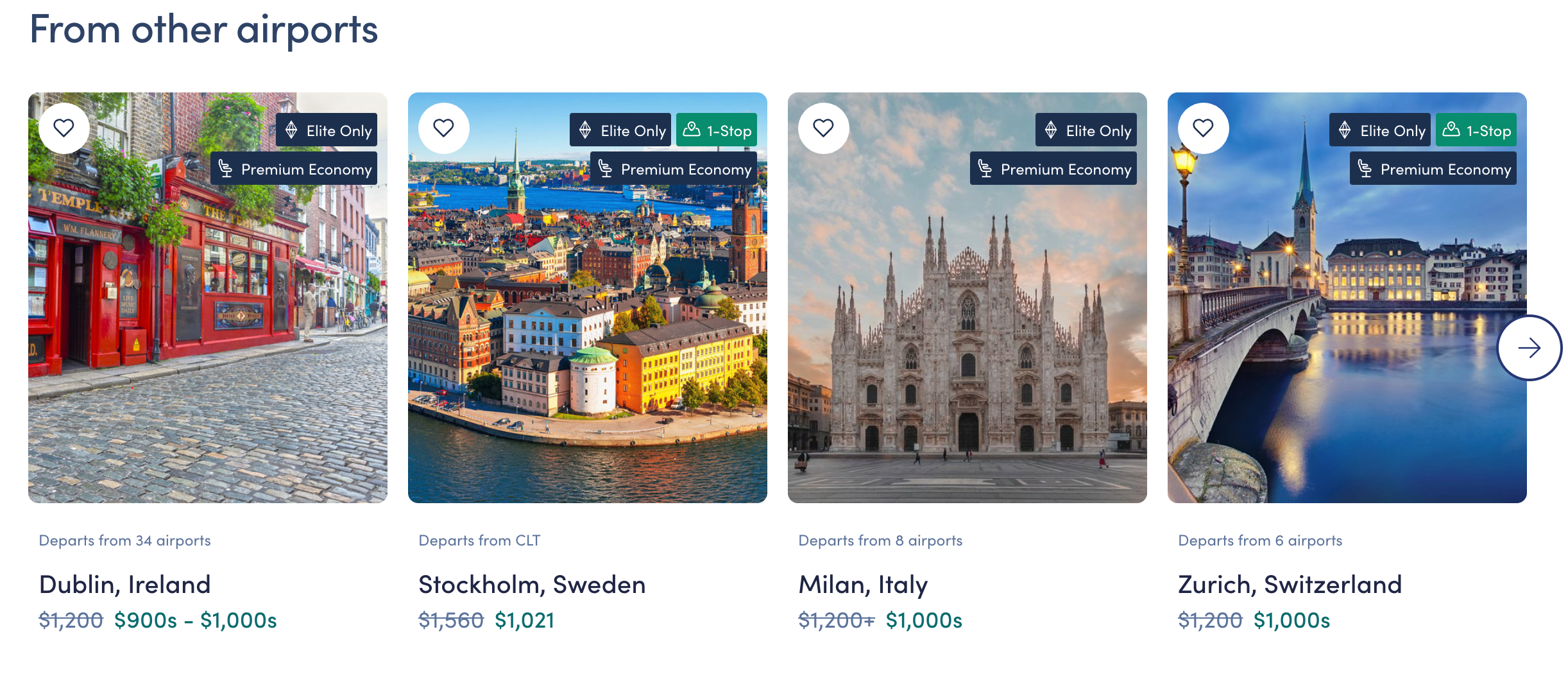 - Seattle (SEA) to Madrid starting at $1,030 and Zurich (ZRH) starting at $1,090.