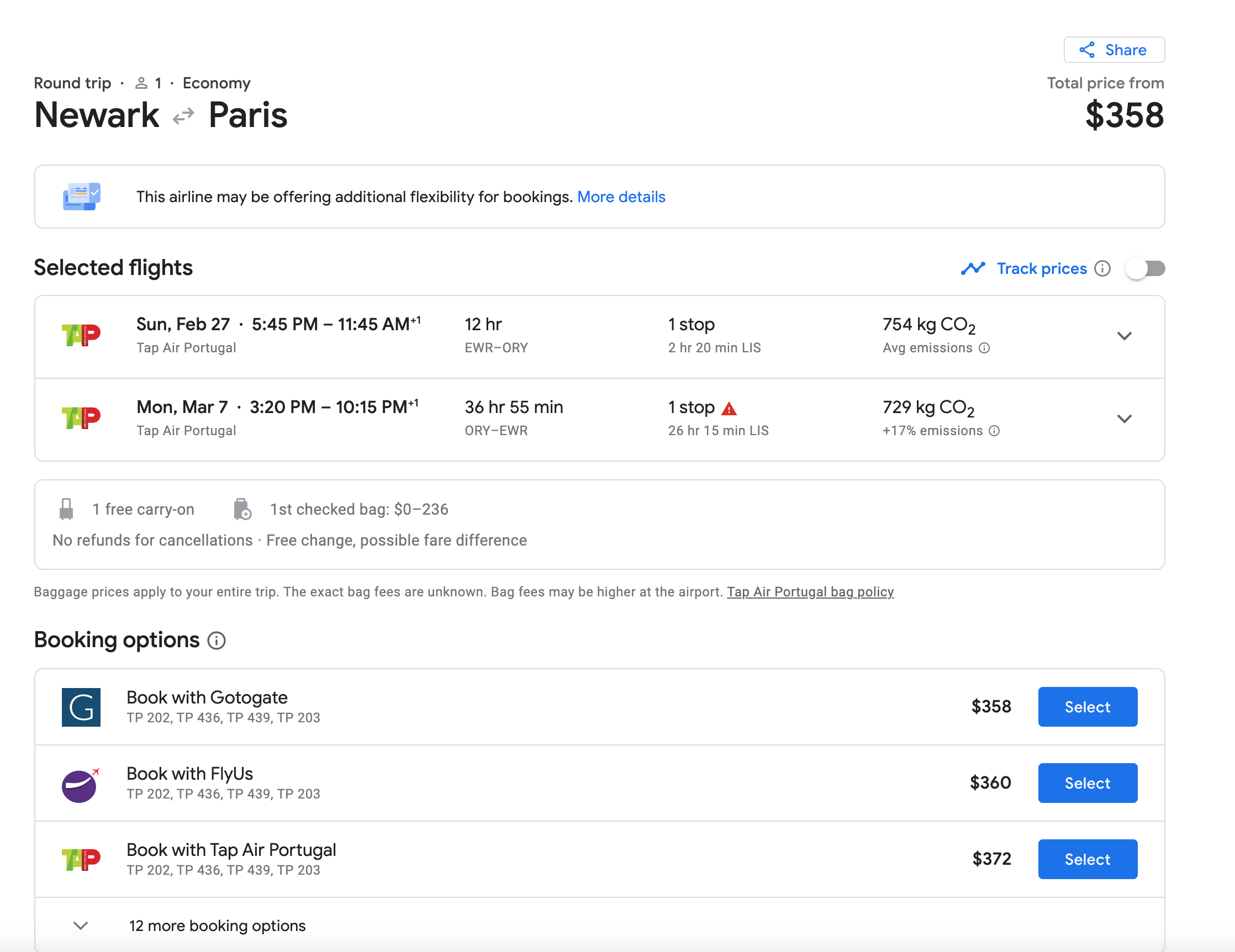 The best deal I found was for $358 from Newark (EWR) to Paris (ORY).