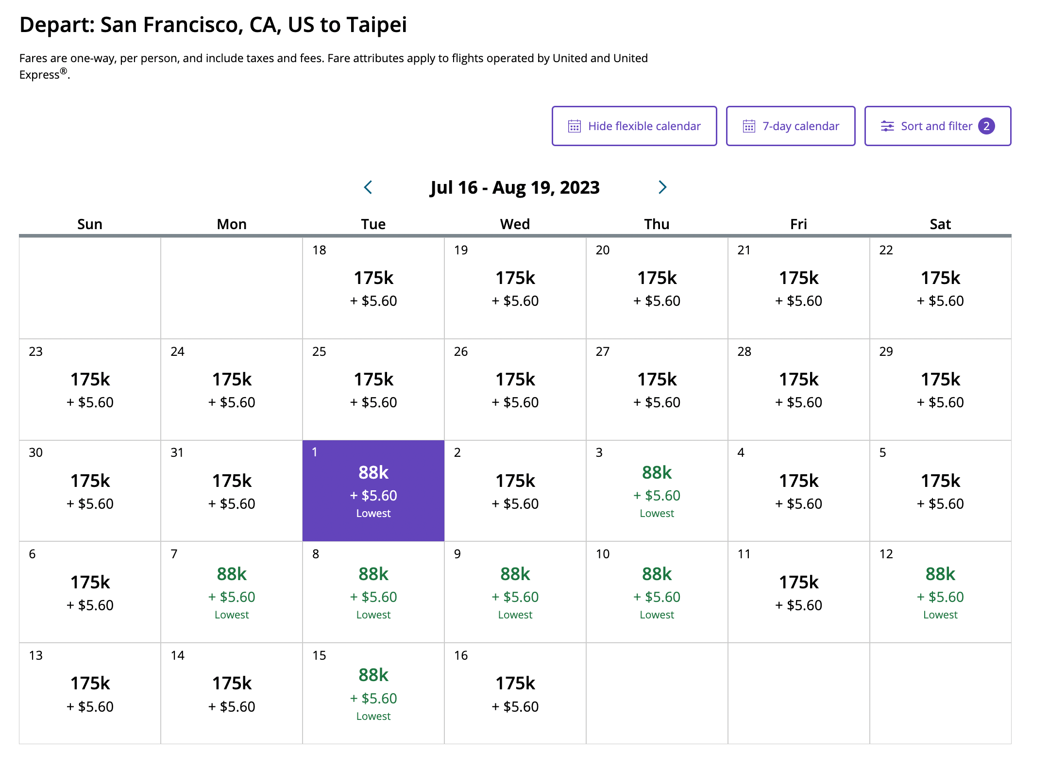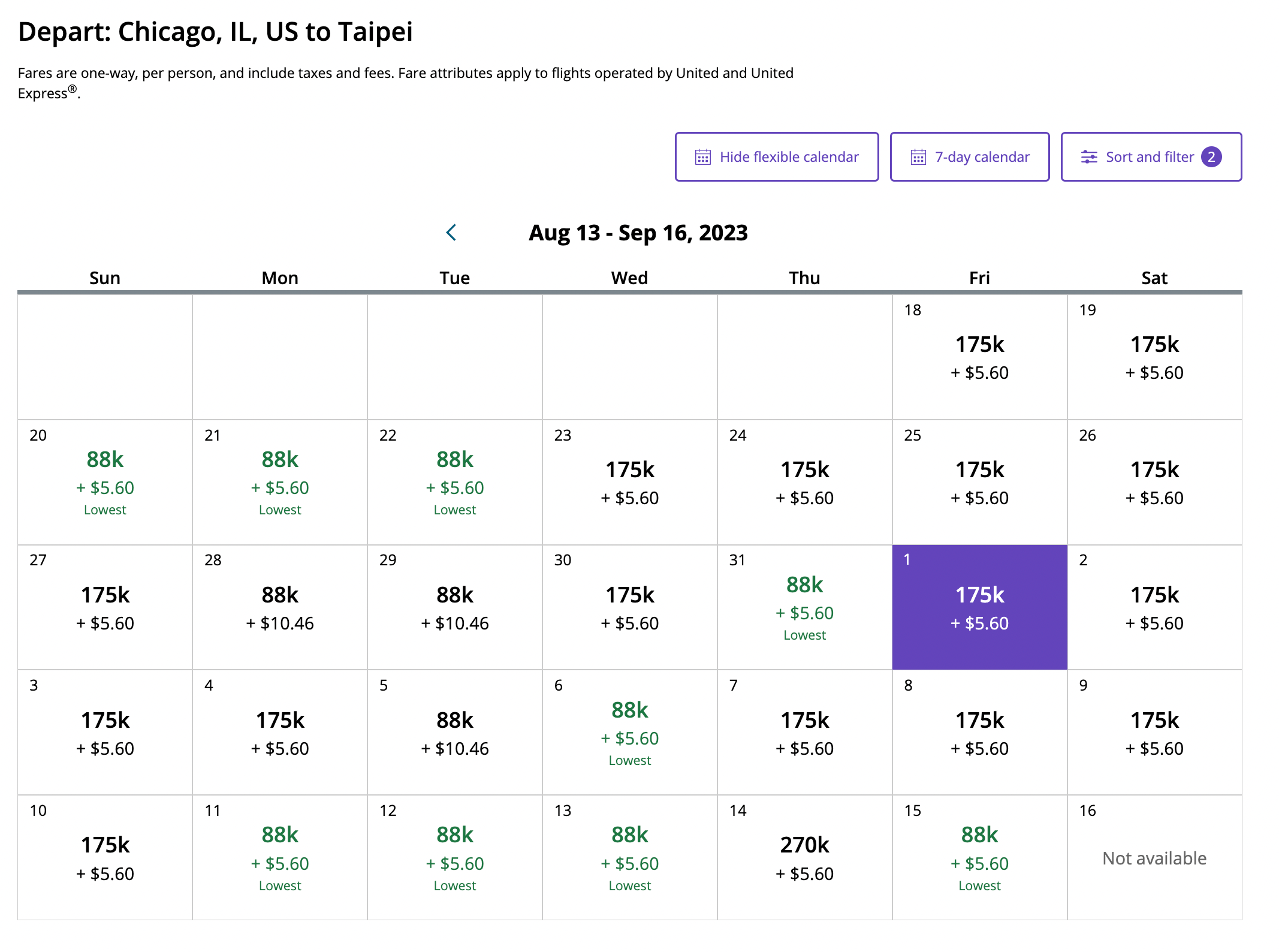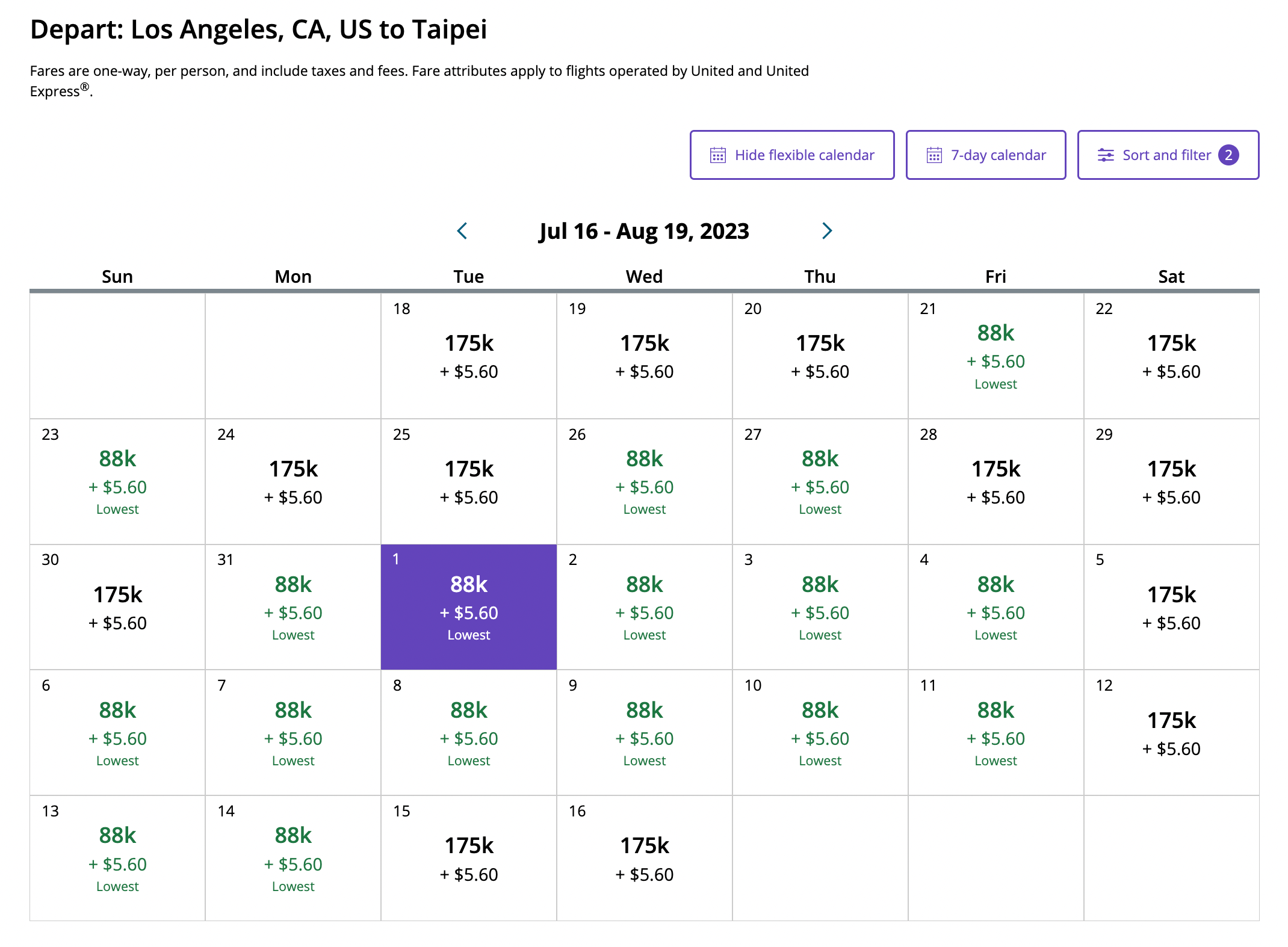 Routes: The best availability is from Los Angeles International Airport (LAX) to Taiwan Taoyuan International Airport (TPE). There is also some decent availability from Chicago's O'Hare International Airport (ORD) and San Francisco International Airport (SFO).