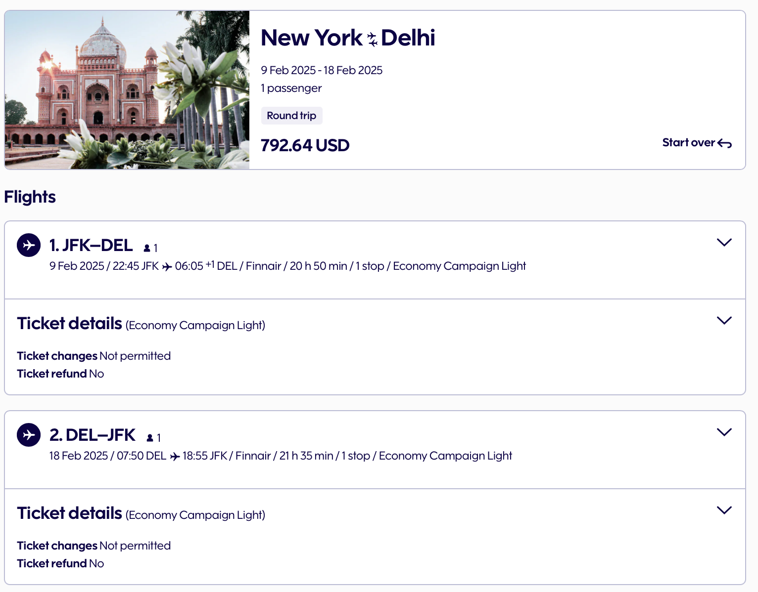 Also, you can fly out of JFK to DEL for less than $800 round-trip. This itinerary is for February, but we saw good availability at this price in January as well.