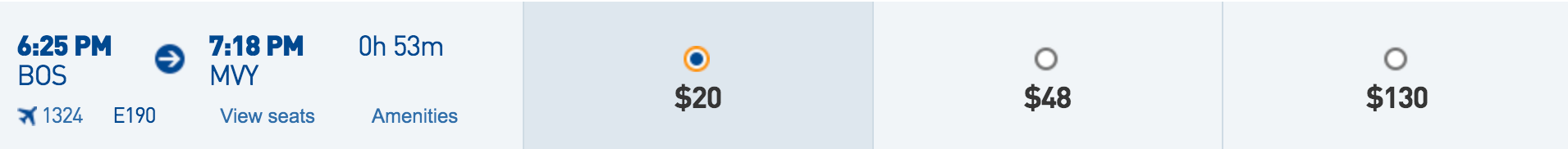 Boston (BOS) to Martha's Vineyard for $20 one-way: