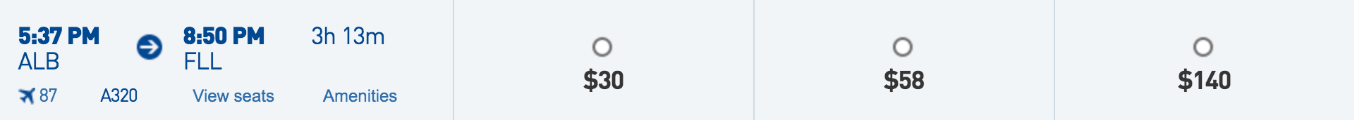 Albany (ALB) to Ft. Lauderdale (FLL) for $30 one-way: