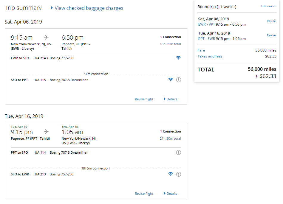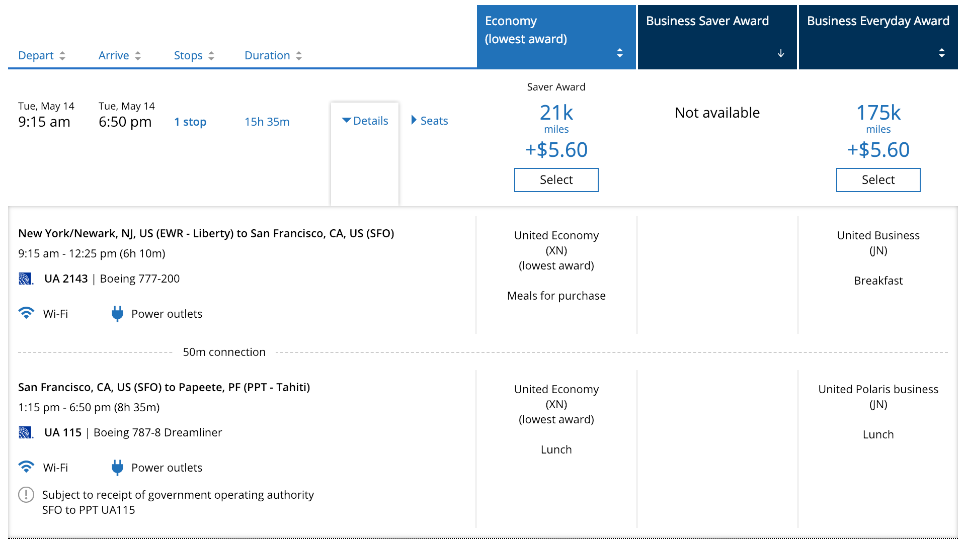 Before booking, check the cash fares for the flight to make sure you're getting a good deal. United is facing quite a bit of competition from San Francisco (SFO) to Papeete, Tahiti (PPT). You can currently book nonstop United cash fares for as little as $618 round-trip.