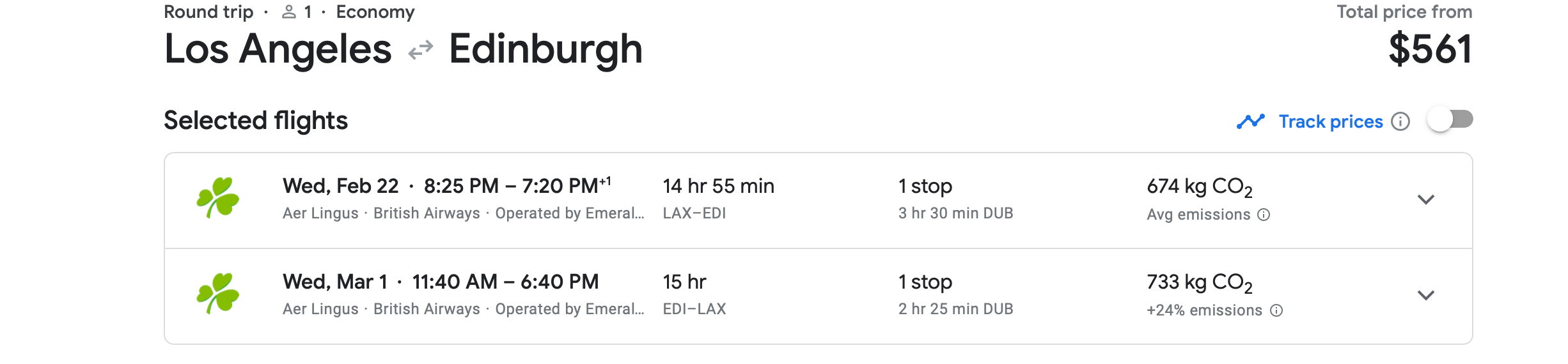 Flights from Boston to Edinburgh clock in at around $500, including this flight coming up soon.