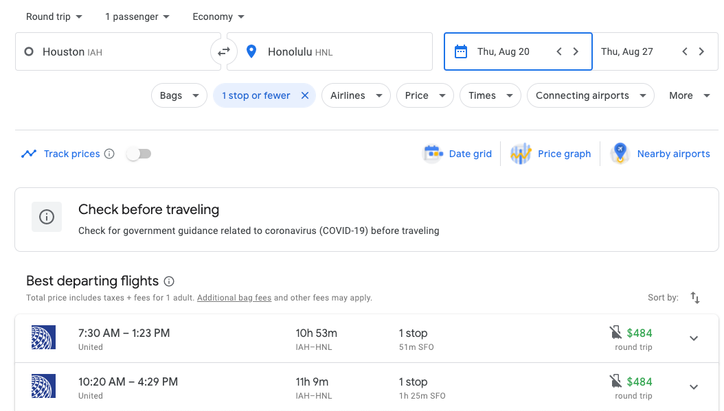 Houston - Honolulu: $484 on United