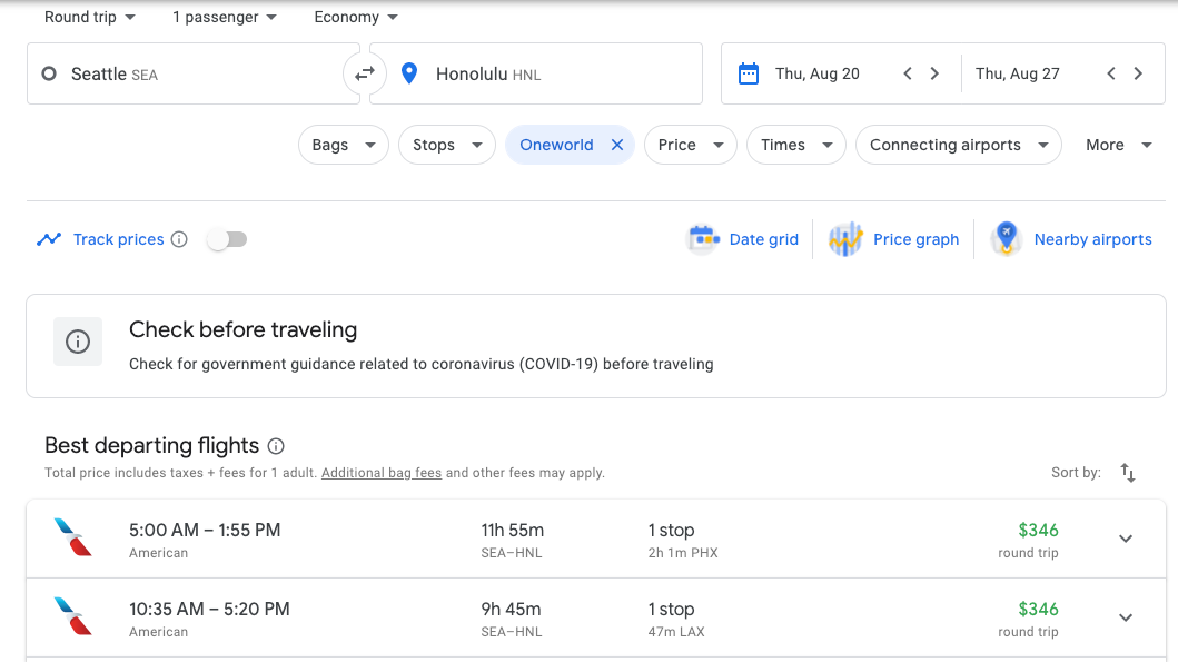 Seattle - Honolulu: $346 on American