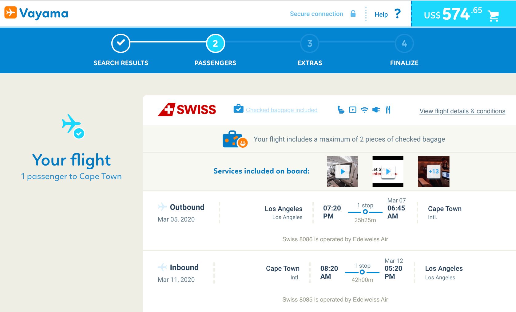 Los Angeles (LAX) to Cape Town, South Africa (CPT) for $575 round-trip on SWISS via Vayama: