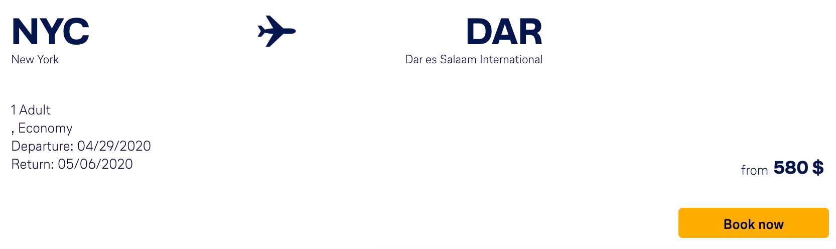 New York (JFK) to Dar es Salaam, Tanzania (DAR) on Lufthansa for $580 round-trip: