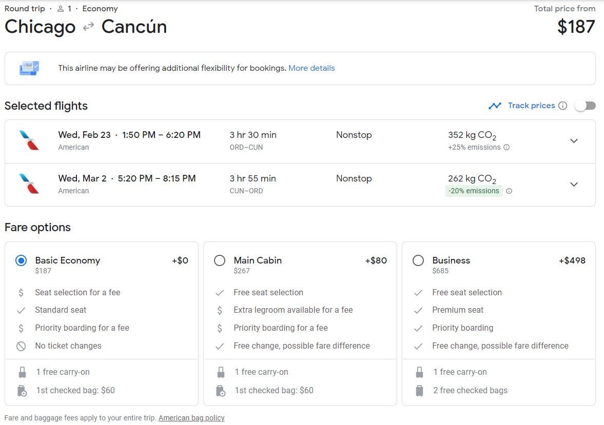 Travelers can go from Chicago (ORD) to Cancun (CUN) on a nonstop flight via American Airlines for $187 round-trip.