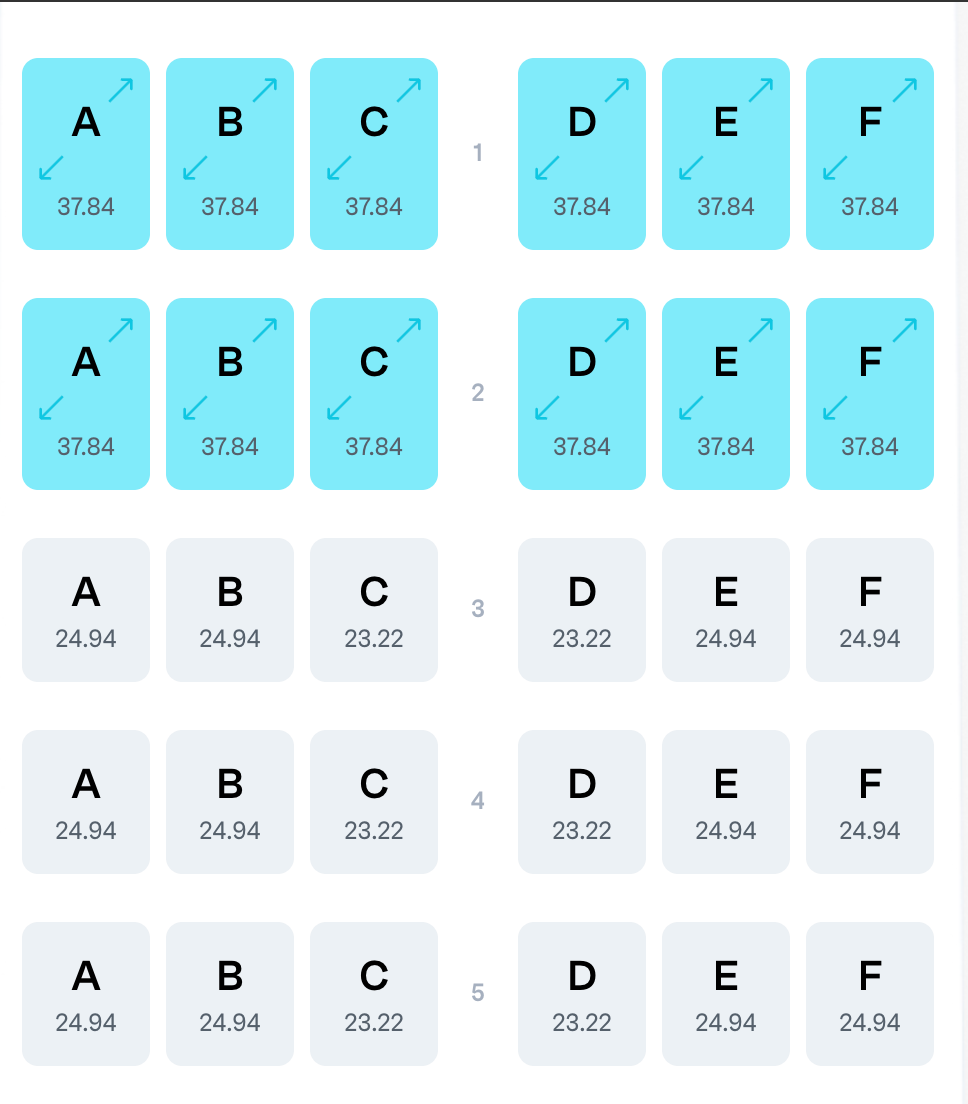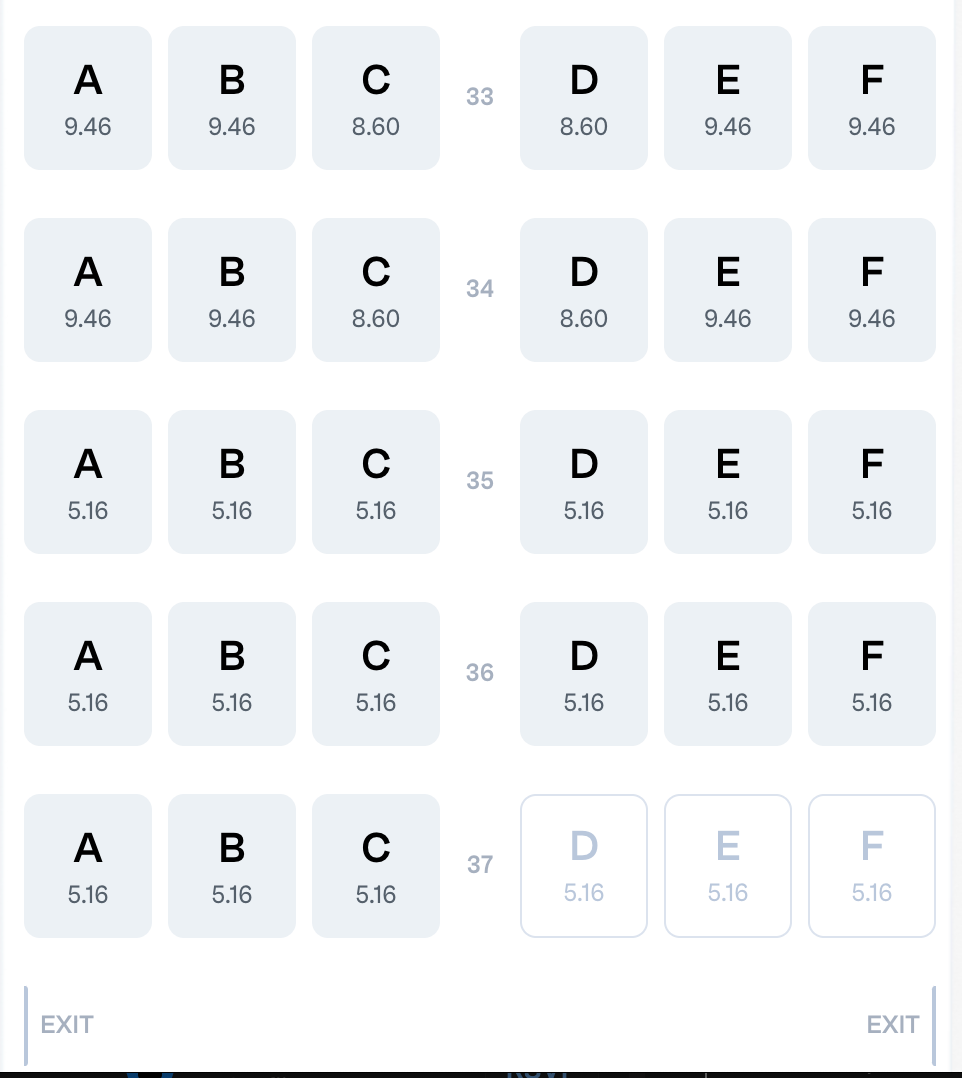 As you would expect, the cheapest seats are toward the back of the aircraft and have less legroom.