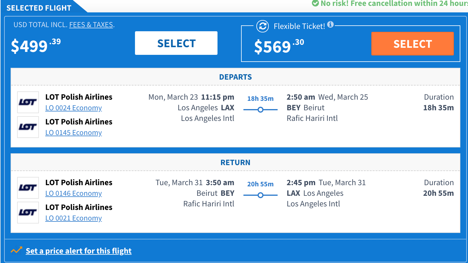Los Angeles (LAX) to Beirut (BEY) for $499 round-trip on LOT Polish Airlines via SmartFares: