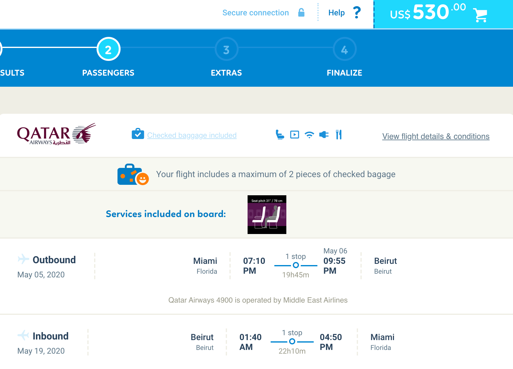 Miami (MIA) to Beirut (BEY) for $530 round-trip on Qatar via Vayama: