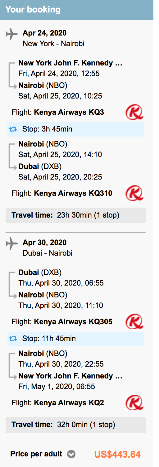 New York (JFK) to Dubai (DXB) for $444 round-trip on Kenya Airways via GoToGate: