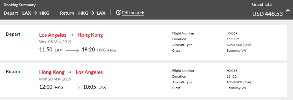 Los Angeles (LAX) to Hong Kong (HKG) for $449 round-trip nonstop on Hong Kong Airlines: