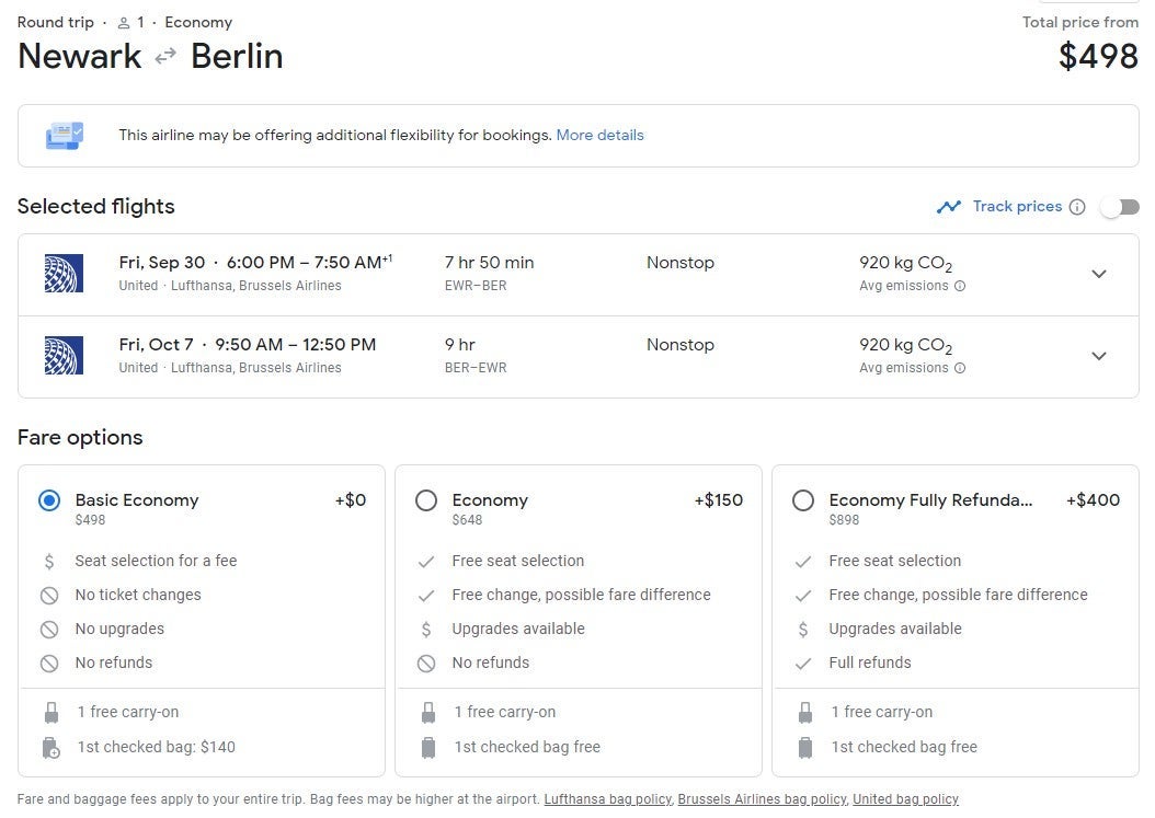 You can snag a nonstop flight to Berlin (BER) from Newark (EWR) at $498 round-trip.