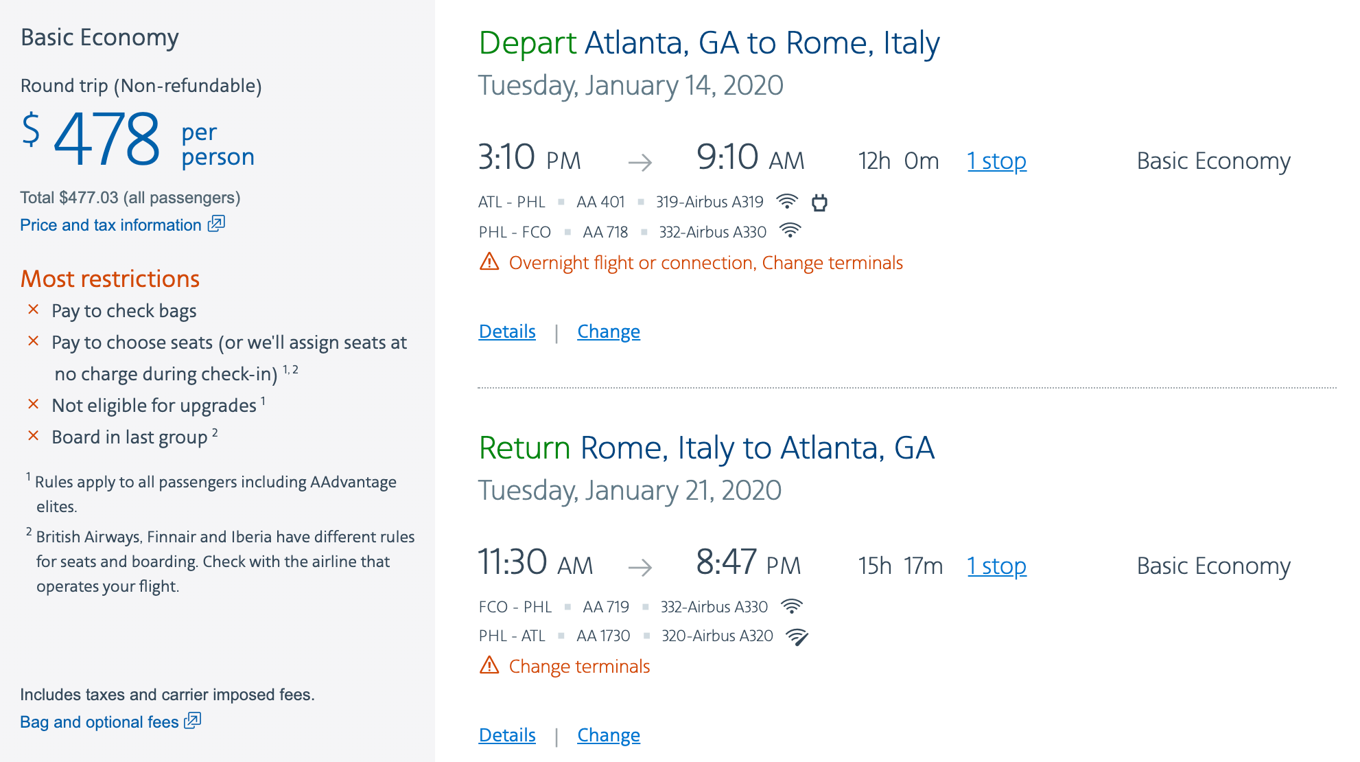Atlanta (ATL) to Rome (FCO) for $477 round-trip on American: