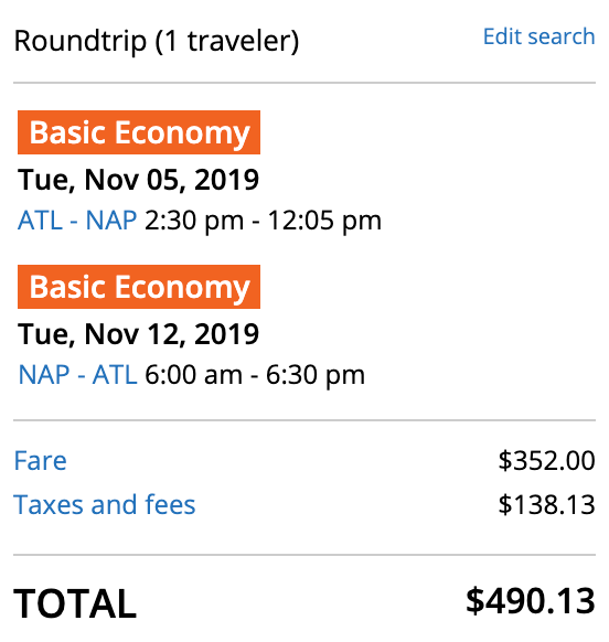 Atlanta (ATL) to Naples (NAP) for $490 round-trip on United: