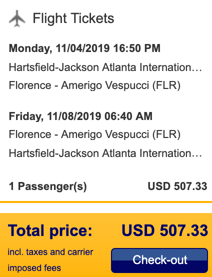 Atlanta (ATL) to Florence (FLR) for $507 round-trip on Lufthansa: